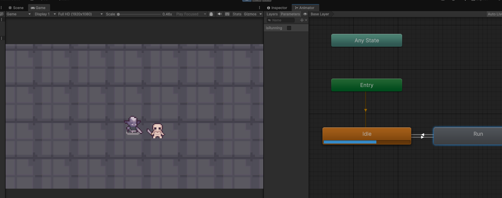 Ellers gik dagen i dag med at arbejde i Unity og hvor jeg først fik hjulpet andre i min Erfra gruppe for hvordan man arbejder med sprites og animationer. Derefter kom jeg igang med at tilføje en tredje animation til mit topdown spils blendtree så når man klikker på venstre museknap så udfører den en "trigger" som er et onetime animation og det bruges til angreb, jump osv. Kort sagt det udføres engang per klik.